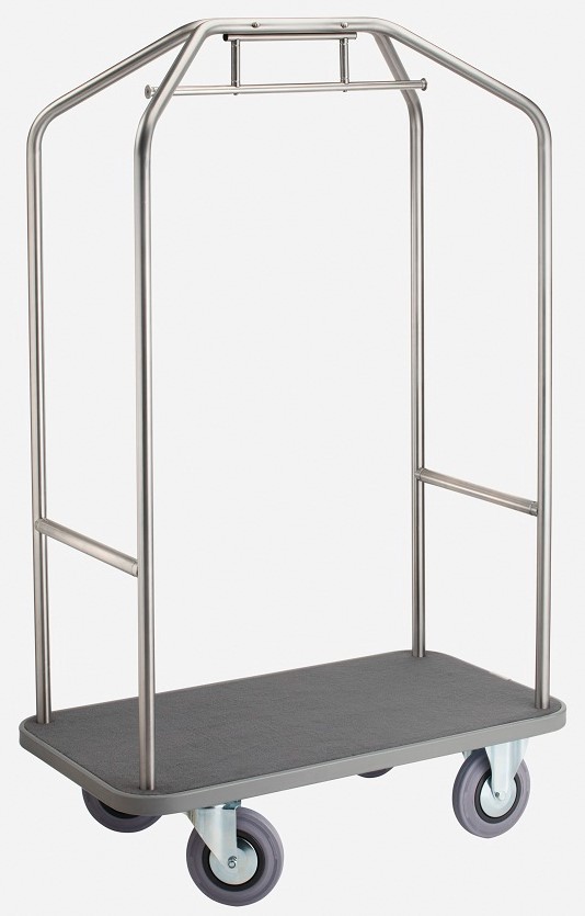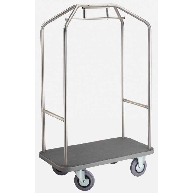 Plate-forme métallique recouverte de tapis avec barre de suspension.