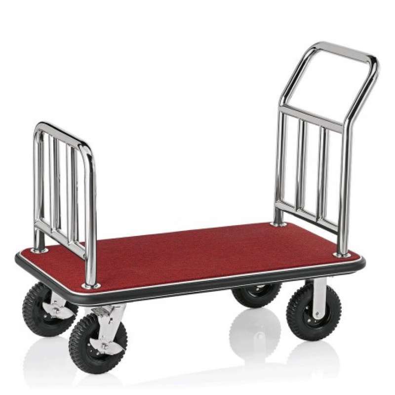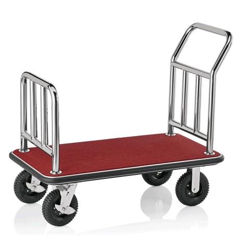 NIMES. Chariot à bagages avec structure en acier brillant et plaqué or. Choisissez la couleur du tapis dont vous avez besoin et demandez un devis ici.