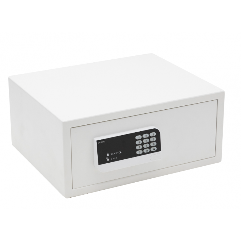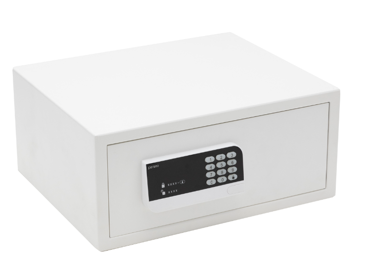 Il dispose d'un mode d'emploi simple et, à la vue de l'invité, d'indications visuelles et acoustiques pour les personnes handicapées. Il dispose également d'un écran d'affichage pour faciliter la mémorisation du code. Boulons en acier rotatifs, éclairage intérieur à LED, construction en acier solide, avec des trous d'ancrage pour une tenue solide. Enfin, il dispose d'une clé et d'un code d'urgence, d'une piste d'audit des ouvertures et fermetures effectuées avec affichage de la date et de l'heure.